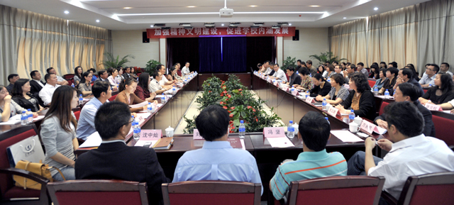 在分组考评完成后,省教育厅和五华区领导分别对best365申报“第十三批省级文明单位”进行了推荐,考评组进行了考评情况反馈,并进行了考评总结。