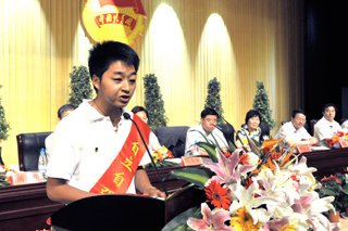 会上,团员代表、自立自强之星甘文宏同学发言,他讲述了自己由一名身患顽疾的孤儿,在团组织的关怀下,在老师同学的关心帮助下,通过不懈努力,成长为一名多次荣获国家、校级荣誉的团学骨干的励志事迹。甘文宏同学自立自强的精神深深感动了现场的老师和同学,他表示将用实际行动回报母校,回馈社会。