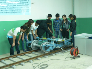 为适应蓬勃兴起的昆明城市轨道交通跨越式发展应用型人才需求,自动控制与机械工程学院根据学校的办学定位,积极调整人才培养方案,在机械设计制造及自动化专业增加了轨道交通运营和轨道交通设备两个专业方向。为达到轨道交通专业人才培养规格,2011年下半年着手筹建轨道交通工程实验中心,2012年3月建成并投入使用。