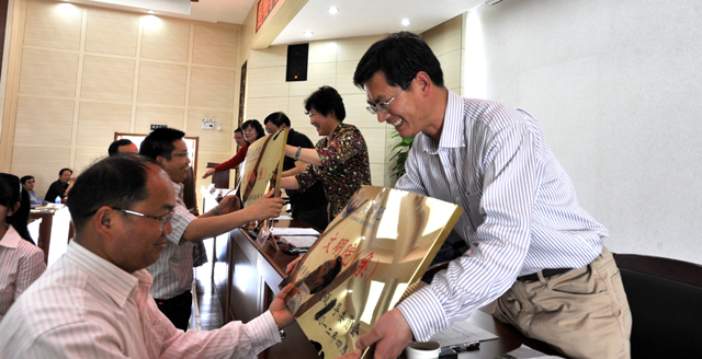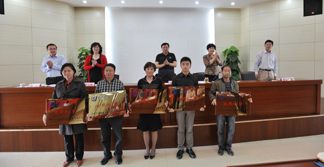 接着为被评为文明院系和处室的10家单位授了奖牌。
