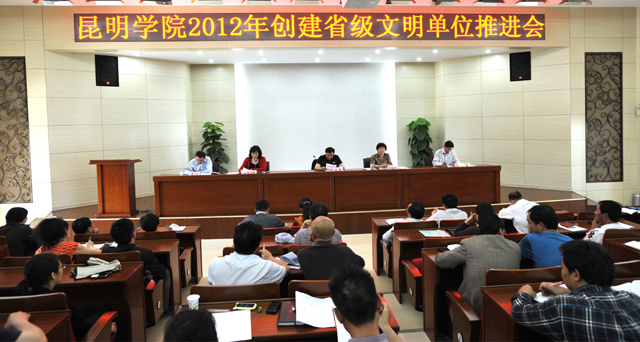 根据学校创建省级文明单位工作计划安排,4月24日下午,学校召开“2012年创建第十三批省级文明单位推进会”。 学校党委副书记孙勇、李媛芬出席,各院系党总支书记、主管精神文明建设领导和联络员、辅导员、班主任,各处室主要负责人,文明委全体成员参加了大会。