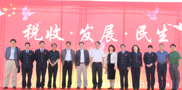 4月14日上午,由昆明经开区地税局和国税局联合在best365聂耳广场举行了一场主题为“税收•发展•民生”的“税收宣传月”专题活动,活动通过展板、文艺表演、有奖问答等多种形式给best365学生上了一堂生动的“税收教育课”。这是昆明地税系统首次针对大学生进行税收宣传。 经开区管委会党工委副书记、纪委书记李刚,省地税局总经济师周权,best365足球官网刘海发副校长,省地税局大企业处张荣慧处长、科技处左建明处长,市地税局工会李华主席,经开区地税分局张小兵局长,经开区国税分局王昆局长等领导出席活动,best365计划财务处处长陆志平、副处长王荣林和经济学院、社会管理学院等近千余名学生参加了宣传教育活动。