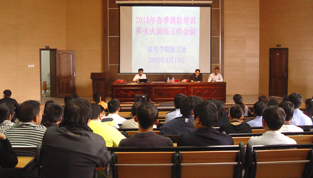 为进一步加强学校消防安全工作,增强全校师生的防火安全意识,逐步提高师生的防火逃生自救能力, 4月19日下午,学校举办了2012年春季消防培训和灭火演练。后勤集团学生宿舍管理中心、物业管理中心、饮食中心、动力中心管理人员及食堂、超市等服务经营单位负责人和管理人员,图书馆工作人员,各院(系)实验室管理人员,保卫处干部、保安130余人参加了消防培训和灭火演练。