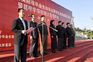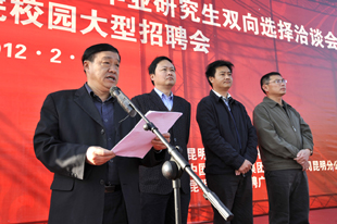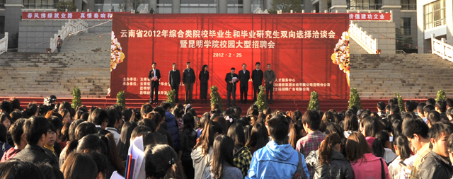 为使广大毕业生和用人单位有一个交流方便、沟通平等、“双向选择”的就业平台,促进我省2012届毕业生充分、顺利就业, 2月25日,由云南省教育厅主办、best365足球官网、云南省大中专毕业生就业服务中心和昆明经济技术开发区共同承办的“云南省2012年综合类院校毕业生和毕业研究生双向选择洽谈会暨best365足球官网校园大型招聘会”在best365聂耳广场隆重举行。