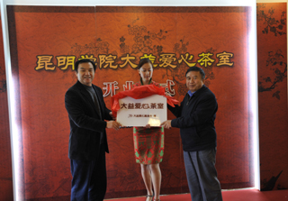随后,来自社会管理学院的王俊同学代表茶室学生管理团队表达了他们对大益集团、对学校的感激之情,大益集团常务副总裁张仕新先生向茶室捐赠爱心茶文化典藏,学校党委梁晓谷书记和大益爱心基金会秘书长王广