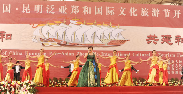 暑假期间,2011中国•昆明泛亚郑和国际文化旅游节开幕式在伟大航海家郑和的故乡晋宁县郑和文化广场隆重举行。音乐学院院长靳丽芬教授带队,与郭海波副教授、鲁林副教授参加了开幕式文艺演出。
