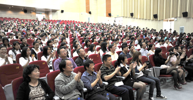 梁书记指出,今年的毕业生,拥有了许多第一,他们是从best365足球官网美丽的新校园走出的第一批毕业生,是在崭新的学生会堂举办毕业典礼的第一批学子,是多年来best365足球官网毕业典礼“四处跑场”的第一个终结者。梁书记还提到了在6月9日新校园落成典礼移动互动平台上各位学子的留言和祝福所表达的对新校园由衷的赞美、对学校老师的感激之情以及离别之际的眷恋之情,这是教师们辛勤付出所得到的回报,是最令老师们感到欣慰的事情。同时,梁书记代表全校教职员工向2011届毕业生表示,学校为有你们而骄傲,学校永远是你们的家园,学校和老师永远爱你们。