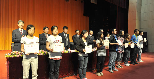 陈世波校长为本科和专科毕业生代表颁发了毕业证书和学位证书。与会校领导为获得国家奖学金、省政府奖学金、省三好学生、省优秀学生干部、省优秀毕业生、校优秀毕业生的代表颁发了荣誉证书。