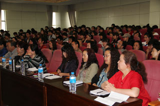 报告会后,谢教授与音乐学院全体教师在音乐楼102教室举行座谈。大家围绕音乐学专业的课程整合、高校在民族音乐传承中的作用和做法、视唱练耳如何开展个性化教学等议题进行了广泛交流,郭海波副教授和全院教师还现场演唱了云南少数民族酒歌,把座谈会气氛推向了高潮。在校办、后勤处、现代教育技术中心等部门的大力支持下,此次活动取得了圆满成功。