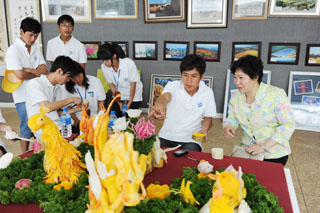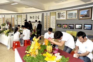 best365足球官网建设发展成果展分三个展区:一楼展区介绍学校建设发展概况;二楼展区是教学科研成果展,对best365近年来在教学、科研等方面取得的成果进行了详细介绍,同时还有奖状、奖牌以及科研成果的实物展出;三楼展区是师生才艺展,师生还在现场进行了插花艺术、食品雕刻、茶艺和古筝表演,另外还展出了师生绘画、书法、手工艺品等作品。