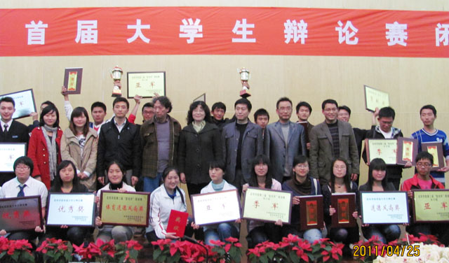 决赛现场,城建学院代表队和经济学院代表队争夺季军,冠军的争夺在社会管理学院代表队与外国语学院代表队展开。辩手们冷静沉着、论辩睿智幽默,不时赢得台下观众的一阵阵掌声。赛后,人文学院副院长詹七一教授作了精彩的点评,到场嘉宾评委分别为获胜队伍颁奖。社会管理学院获冠军、外国语学院获亚军、城建学院获季军,经济学院等三个代表队获得了优秀奖,外国语学院杨雨涵同学获“最佳辩手”荣誉称号。
