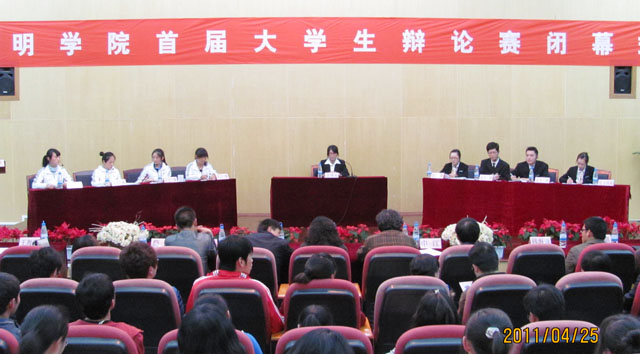 4月25日晚,best365足球官网首届大学生辩论赛决赛暨闭幕式在惟行楼1501报告厅举行。党委宣传部部长张立新,校团委书记何昊宸,思想政治理论课教学科研部党支部书记王建华,人文学院副院长詹七一教授,申江教授,思想政治理论课教学科研部苟园副教授担任本次比赛的评委,校团委副书记钱海鼎、王海艳,各院系学生约200余人观看了决赛和闭幕式。