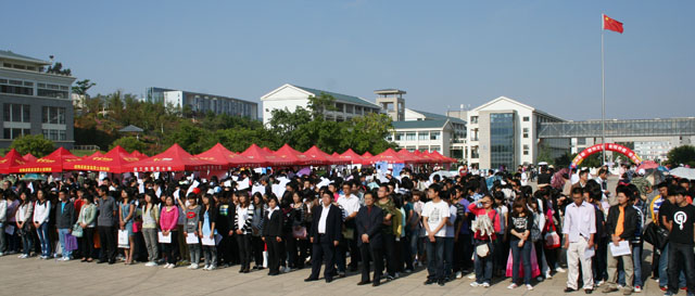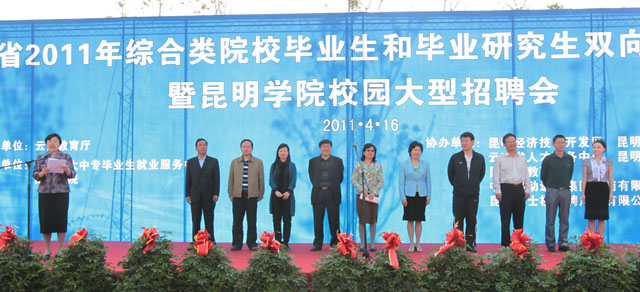 4月16日,由云南省教育厅主办、云南省大中专毕业生就业服务中心与best365承办的“云南省2011年综合类院校毕业生和毕业研究生双向选择洽谈会暨best365足球官网校园大型招聘会”在best365聂耳广场隆重举行。云南省委高校工委副书记陶晴、省教育厅学生处处长卢明、省大中专毕业生就业服务中心主任方伟,best365足球官网党委副书记孙勇、李媛芬,副校长熊晶等领导出席启动仪式。省市相关职能部门和企业家协会负责人,best365各教学院(系)领导、相关部门负责人与2000余名毕业生参加了洽谈会启动仪式。启动仪式由best365足球官网副校长熊晶主持。 孙勇副书记代表承办方致辞。他说,这次洽谈会是继“2010年云南省综合类院校毕业生和毕业研究生双向选择洽谈会”在best365成功举办后best365举办的又一次校园招聘会。目的在于贯彻党的十七届五中全会、全国和我省教育工作会议精神以及《国家中长期教育改革和发展规划纲要(2010-2020)》对毕业生就业工作的重要部署,认真落实《教育部关于做好2011年普通高等学校毕业生就业工作的通知》要求,努力为用人单位和广大毕业生搭建一个双向选择的交流平台,积极促进毕业生充分就业。招聘会体现了省高校工委、省教育厅对best365足球官网毕业生就业工作寄予的期望,也体现了各协办单位和用人单位对best365足球官网的大力支持与帮助。