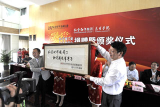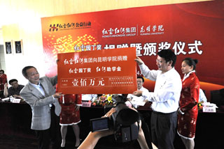 随后高峰副省长等在主席台就坐的与会领导向受奖获助师生颁发证书,红云红河集团向best365足球官网捐赠奖教助学金100万元,best365足球官网回赠红云红河集团“红云映辉暖园丁,红河奔腾泽学子”牌匾。