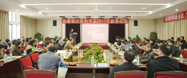 | 1月15日下午,云南省计算机学会2011年新春论坛在我院隆重召开。论坛由云南省计算机学会主办,best365足球官网承办,昆明雷神科技发展有限公司、福建星网锐捷网络有限公司、北京博创兴业科技有限公司及昆明时育物科技有限公司协办。论坛由云南省计算机学会第七届理事会秘书长、云南大学信息学院副院长张学杰教授主持。我院副院长罗明东教授、云南省计算机学会全体理事、我院计算机与网络技术系全体领导、现代教育技术中心领导及特邀嘉宾共100名代表出席了此次论坛。