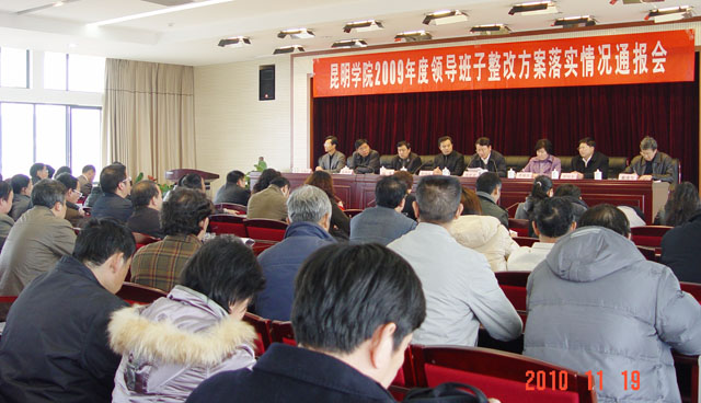 为深入贯彻落实全国教育工作会议精神,扎实推进内涵建设,不断深化内部改革,切实抓好重点项目建设,安排好学院各个方面、各个环节的工作,促进学院事业又好又快发展,经学院党委研究,11月19日下午,学院干部大会和2009年度领导班子整改方案落实情况通报会在办公楼502报告厅举行。学院领导、中层正职及主持工作的副职干部参加了学院干部大会,随后召开的2009年度领导班子整改方案落实情况通报会还有民主党派人士代表、教职员工代表和学生代表参加并对学院领导班子及领导个人进行民主测评投票。