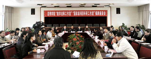 揭牌仪式由熊晶副院长主持,王永全处长和罗明东副院长、赵纯处长和熊晶副院长分别为“教学名师工作室”和“国家级项目科研工作室”揭牌。这标志着省教育厅分别对我院的尹相如、窦志萍教授授予“云南省名师工作室”牌匾,授予马银海、孙学强、王昆建、孙丘克4位教授“云南省教学名师”正式在我院图书馆6楼挂牌,16位教授、副教授走进了工作室。