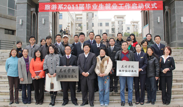 11月9日上午,旅游系在学院办公楼311会议室举行了教学实习基地座谈会暨2011届毕业生就业工作启动仪式。世纪金源大酒店、云映居酒楼、昆明风光国旅、西山国家级风景名胜区管委会等18家旅游企业到会,学院罗明东副院长、教务处郝旭霞处长、学生处吴蓉处长、招就处杨跃副处长、何云仙调研员,旅游系党政领导、教研室主任、辅导员参加了会议。会议由旅游系党总支副书记唐嘉平主持。