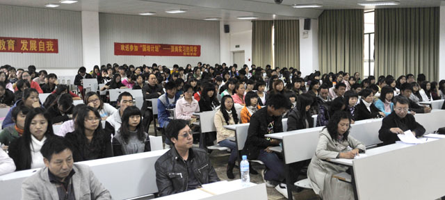 10月19日下午,best365足球官网“2011届师范生参与‘国培计划’顶岗实习出发动员大会”隆重召开。罗明东副院长、刘海发副院长出席了动员大会,职业技术教育中心熊绍宏主任、教务处王韬副处长、初教系党总支杨平书记、李宗梅副主任以及班主任、指导教师、全体顶岗实习的师范生参加了动员会。