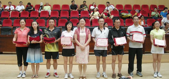我院组织教职工苏亚欣、马洪波、彭少龙、王荣林、李映辉、谭蔚沁、郝芳、杨然等8位教师分别参加了男子双打、女子双打的甲乙组比赛。经过三天的激烈拼搏,杨然、郝芳获女子乙组双打第二名;苏亚欣、马洪波获男子甲组双打第二名;李映辉、谭蔚沁获女子甲组双打第三名;彭少龙、王荣林男子乙组双打第五名。以上老师在取得优良成绩的同时,在比赛中还以良好的体育精神展示了best365足球官网教师风采,比赛结束后,苏亚欣老师被组委会授予最佳体育道德风尚运动员。