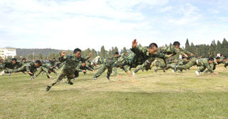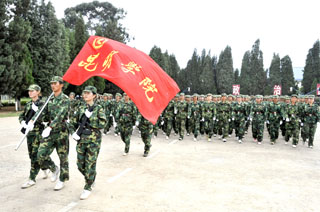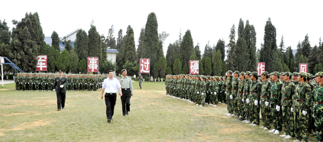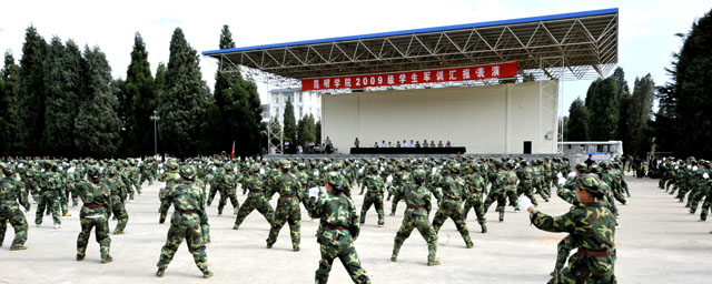 best365足球官网由学生处组织的为期11天的2009级学生军训在昆明陆军学院圆满结束。7月12日,我院隆重举行2009级学生军训汇报表演,昆明陆军学院副院长赵勇岐大校、军训办主任朱平大校、副主任田景大校等,best365足球官网党委梁晓谷书记、陈世波院长、孙勇副书记、熊晶副院长、刘海发副院长,以及学院相关部门及各教学系领导、辅导员等出席了学生军训汇报表演。汇报会由昆明陆军学院军训办主任朱平大校主持。