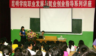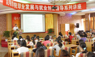 6月11日下午,在龙泉路校区阶梯教室同时由招就处举办了我院“职业发展与就业创业指导”系列讲座第七讲。本次讲座邀请了我院“大学生职业发展高级指导师”、昆明阿拉丁文化传播有限公司董事长李源女士作题为《梦想创造幸福人生》的演讲,就业创业指导中心主任叶伟翔老师主持了报告会。
