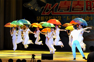 在庆典演出中,学院大学生艺术团和各系团总支表演了《国魂》、《从头再来》、《追赶太阳》、《以青春的名义》、《阳光路上》等10个精彩节目。优美的旋律、绚丽的舞姿,洋溢着青春激情,演绎出了当代青年对今天美好生活的赞美和深情祝福,表达了对未来的无限憧憬。