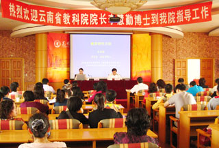 为实现学院超常规、跨越式、追赶型发展,提升我院教师的学术素养和教育科研的能力,应我院罗明东副院长邀请,省教科院院长李慧勤研究员、博士于4月16日下午来我院作《教育科研方法与课题申报》的专题报告。学院相关职能部门的领导、教师教育中心、初等教育系、学前教育系等相关系室领导和教师约120人参加了报告会。会议由罗明东副院长主持。