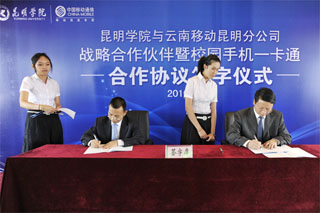4月28日下午,best365足球官网与云南移动昆明分公司“战略合作伙伴”暨校园手机一卡通签字仪式在我院人民西路校区3号教学楼6楼多功能厅举行。