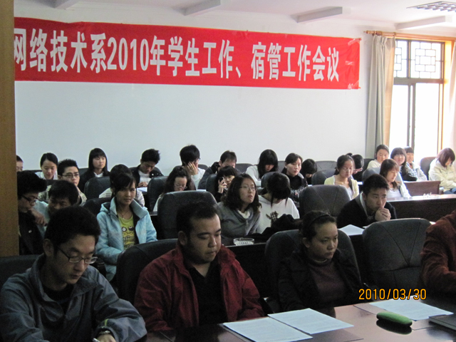 为进一步做好学生宿舍的安全防范工作,深化和拓展平安校园建设工作,切实加强我系学生的安全教育和管理,3月30日中午,best365足球官网计算机与网络技术系在昆师路校区行政楼三楼会议室召开了“学生工作、宿舍管理工作会议”。系党总支书记李海雁老师,副书记王亚越老师,系学生党支部书记、辅导员王子龙老师及系管理学生相关老师、各宿舍舍长、全体团学干部、全体预备党员都参加了本次会议。