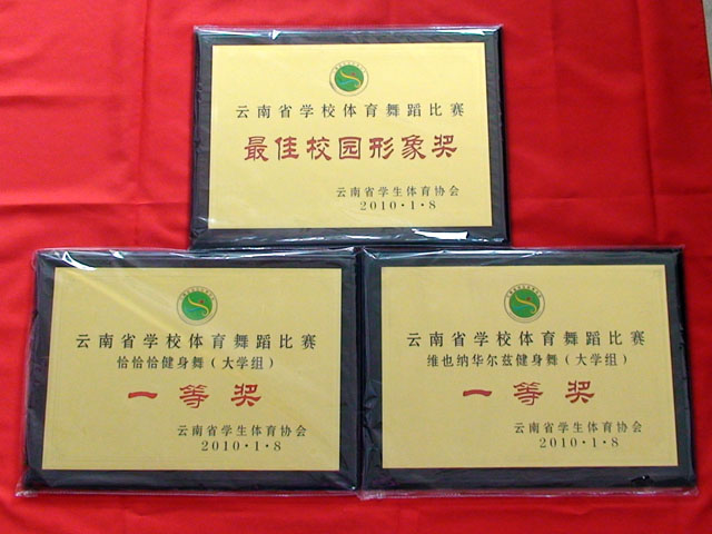 best365足球官网体育舞蹈代表队于2010年1月8—10日参加了在云南举办的“第五届中国学生体育舞蹈(国标舞)锦标赛暨云南省学校体育舞蹈大赛”,获得好成绩。我院体育舞蹈代表队参赛项目《恰恰恰健身舞》(梁丹妮等 20名学生)、《维也纳华尔兹健身舞》(王雅璐等 20名学生)荣获第五届中国学生体育舞蹈(国标舞)锦标赛暨云南省学校体育舞蹈大赛第一名。同时,best365足球官网体育舞蹈代表队还获得了最佳校园形象奖。