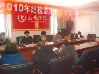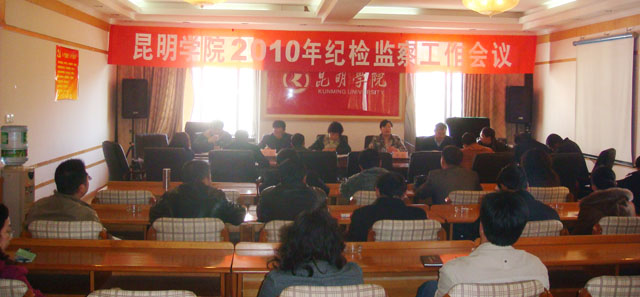 院党委副书记、纪委书记李媛芬同志传达了中纪委五次全会及云南省教育系统2010年党风廉政建设工作会议精神,并就2010年学院党风廉政建设工作提出意见:一是要求各单位和相关人员提高认识,统一思想,将纪检监察审计工作和党风廉政建设工作融入到教学与各项管理工作中;二是要认真贯彻落实学院2010年党风廉政建设工作目标责任书规定的各项工作任务,2010年学院党风廉政建设工作目标责任书要针对学院当前工作实际,遵循量化、细化、实用的原则,进行调整充实、修订执行;三是进一步加大制度落实情况的监督检查力度。她同时强调各部门还要进一步加强和完善制度建设,并将制定的各项制度汇编成册,其次学院纪委将组织力量对制度的落实执行情况进行监督检查。