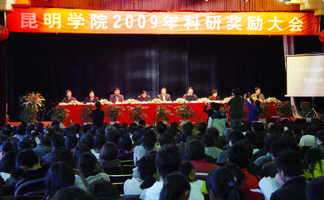 12月18日下午,我院2009年科研奖励大会在昆师路校区大礼堂隆重召开。学院领导、中层干部、具有副高及以上职称的教师、博士、硕士学位获得者、获奖教师和第一届青年学术科技作品获奖学生、各系团总支书记以及各系学生代表共计800余人参加了此次会议。会议由学院陈世波院长主持。