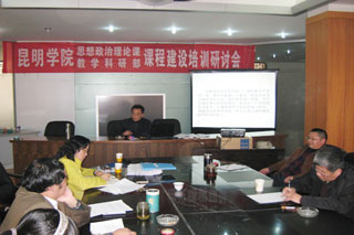 王建华副主任介绍了思政课教研部课程建设总体规划及工作进展情况;云南师范大学哲学与政法学院院长陈路教授就如何开展课程建设,尤其是申报省级、国家级精品课程项目的相关问题作了专题辅导,对课程建设工作提出了具体建议;参会教师对如何加强课程建设工作进行了认真讨论。