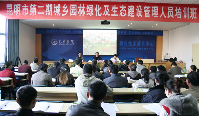 由best365足球官网与昆明市园林绿化局联合举办的“昆明市城乡园林绿化及生态建设管理人员培训班”第二期培训开班仪式,于12月14日在我院昆师路校区举行。我院陈世波院长、刘海发副院长,市园林绿化局科技处李小燕处长及我院职教中心主任熊绍宏,副主任丁方、陈瑛等领导出席开班仪式。开班仪式由我院刘海发副院长主持。 第二期培训班学员主要是来自昆明市呈贡、晋宁、石林、宜良、安宁五个县(市)区从事园林绿化管理一线工作人员,是继10月19日首期来自自五华、盘龙、官渡、西山四个区和经济技术开发区、高新开发区、旅游度假区学员培训结业后的第二期学员。