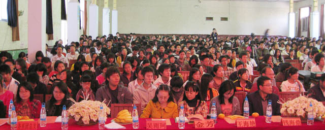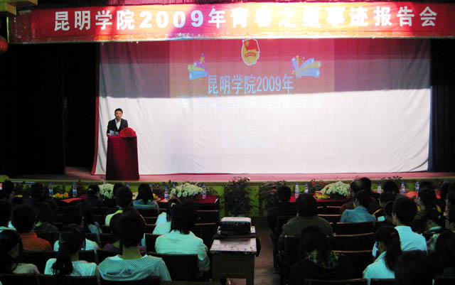 由院团委举办的best365足球官网2009年“青春之星”事迹报告会,11月13日下午在昆师路校区大礼堂举行首场报告。团委书记何昊宸,副书记钱海鼎、王海艳,团委全体干部、各系团总支书记、农学中专部、医学中专部团学工作负责人,以及全院团学干部代表和学生代表共700余人出席了报告会。