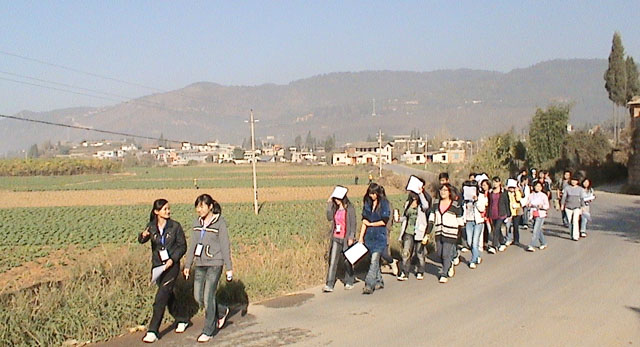 | 11月13、14日,劳动与社会保障专业2008级的全体同学及2009级的4名班长在社会科学与人力资源系李徽、熊开万老师的带领下,来到昆明西山区白族、彝族聚居的团结乡开展医疗养老实验实训课程实习。同学们到达团结街道办事处以后,按照实验实训教学计划的要求马上开展了调查问卷的调研,先后两天完成了《团结乡社会养老保险调查问卷》和《团结乡社会医疗保险建设调查问卷》调研的任务。