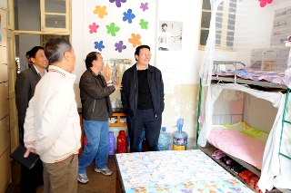 陈院长一行到达龙泉路校区,首站就直奔文新系、学前系的学生宿舍了解情况。在校区综合办何华主任的引导下,大家先后查看了学生的宿舍和相关的生活设施。陈院长边查看边仔细了解学生学习生活情况及存在的困难,并要求参加调研的部门和涉及到的部门,要尽可能地在现有条件的情况下,关心学生的生活,为学生提供学习和生活上的方便,让学生们安心学习和生活。