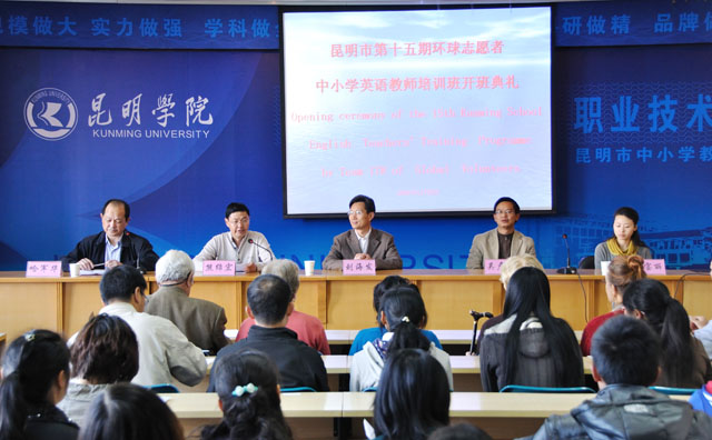 11月9日上午,为期两周的昆明市第十五期“美国环球志愿者”中小学英语教师培训班开班典礼在昆师路校区举行。best365足球官网刘海发副院长和昆明市教育局师训高教处吴彦明处长及“美国环球志愿者”组织中国区项目负责人王宝丽女士等出席开班仪式。来自我市14个县(市、区)、三个开发区及德宏州潞西市的共60余名中小学英语教师参加培训。 刘海发副院长代表best365足球官网对来自大洋彼岸,传播中美友谊的八位美国志愿者表示热烈欢迎和衷心的感谢!他勉励学员们珍惜难得的机会,认真学习。开班典礼上吴彦明处长代表昆明市教育局对培训班开办表示热烈祝贺!同时强调举办“美国环球志愿者”英语教师培训班的重要作用和积极意义。 “美国环球志愿者”组织受昆明市人民政府邀请,该组织从2005年6月起,先后14次组织美国志愿者173人,前来为我市培训中小学、幼儿园英语教师1143人。由于志愿者教学理念先进、方法科学、态度认真,同时参训教师虚心学习,积极配合,培训收到了较好的效果。美国环球志愿者定期到我院开展此项活动,有力地推进了我市教师培训工作的国际化进程。 开班典礼由best365足球官网职教中心熊绍宏主任主持,学院对外交流合作处哈军华副处长亦出席了开班典礼。开班仪式后院领导与学员一起合影留念。