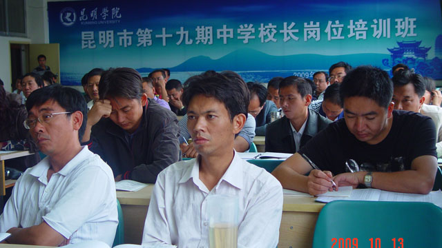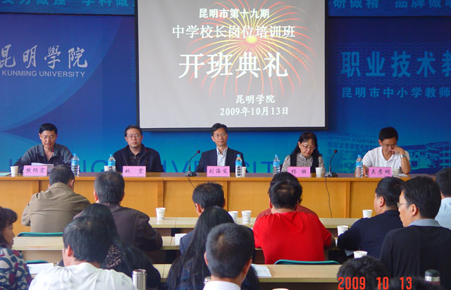 10月13日上午,昆明市第十九期中学校长岗位培训班在best365足球官网昆师路校区举行了开班典礼。云南省教育厅师范处杨丽处长、昆明市教育局姚宏副书记、副局长、师训高教处吴彦明处长、best365足球官网刘海发副院长以及职业技术教育中心的各位领导出席了开班典礼。来自昆明市的76位、德宏州潞西市的4位共80位中学校长(书记)将在我院参加为期三个月的脱产阶段学习。