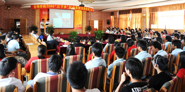 10月16日下午,院团委2009年“三下乡”社会实践活动成果汇报会在人民西路校区举行。团市委机关党总支书记王彦彦,团市委学校部部长栾丽华,学院党委宣传部张立新部长,教务处郝旭霞处长,机关党总支梁艳萍书记,保卫处方永昆副处长,学生处罗进副处长等出席了汇报会,会议由团委书记何昊宸主持。 我院本次“三下乡”根据党委宣传部、学生处、院团委联发的《关于开展best365足球官网2009年大学生暑期社会实践活动的通知》的文件精神,于7月上旬正式启动,历时7天。活动以“高扬爱国主义旗帜、服务科学发展大业”为主题,本着“讲求实效、就进就便、针对性强、辐射面广、安全第一”的原则,按照“全面动员、普遍参与、点面结合、重点突破”的要求,以系为单位,结合本系专业特色,学院共组织了6支志愿服务队到昆明周边县市区基层农村开展社会实践与志愿服务活动。 汇报会上,来自自机系、旅游系、生科系、经济系、计网系、政法系的老师和学生代表,分别对此次“三下乡”社会实践活动作了汇报与成果展示。各汇报系结合系部的专业特色,开展的实践活动形式多样、成果丰富,能够用理论指导实践,用调研成果服务农村、服务社会、服务昆明的实践活动。 党委宣传部部长张立新代表学院活动领导小组讲话肯定:6个系的汇报都反映出了此次社会实践主题突出,准备充分,各系领导和相关老师高度重视,积极支持,责任心强,有的亲自带领学生到农村指导调研服务;各系结合专业特长开展科学发展观政策、普法、科普、环保宣传,进行家电维修、爱心捐赠、社会调研、参观访问、劳动体验、文体活动等,既充分认识社会和乡情,也找正自己的角色位置,以我所能服务社会,为今后发展积累经验,为学院服务地方经济发展,锻炼培养了师生干部,宣传展示了学院办学实力和育人水平,与地方建立良好合作关系,做出实绩。衷心感谢团市委领导和相关处室领导的关心支持,衷心感谢6支小分队的系领导、老师、同学的艰苦努力和辛勤奉献。 会上,团市委机关党总支书记王彦彦作了重要讲话。王书记对我院的“三下乡”社会实践工作给予了充分肯定,她指出,我院的“三下乡”社会实践活动准备充分、成果丰富,特别是通过这次活动让同学们了解了社情民意,倾听到了基层人民群众的心声,找到了奋斗和努力的方向,确实增强大学生服务社会、报效祖国责任感和使命感,发现问题、分析问题、并解决问题的能力得到了进一步的提高,砥砺了品格、磨练了意志、收获了真知、陶冶了情操、树立了理想。这次社会实践活动既是一次同学们了解社会、服务社会的尝试,更是一次理论与实践相结合的马克思主义的第二课堂。 此次“三下乡”社会实践活动是学院团委认真学习贯彻十七大精神,深入开展学习实践的科学发展观活动的重要举措,也是加强和改进大学生思想政治教育、帮助大学生在实践中深刻理解科学发展观重大意义、发挥大学生人才智力优势、服务新农村建设的有效途径。相信此次活动的开展,将为大学生体验农村、融入社会搭建平台,为我院团学工作的不断推进和现代新昆明建设贡献力量。