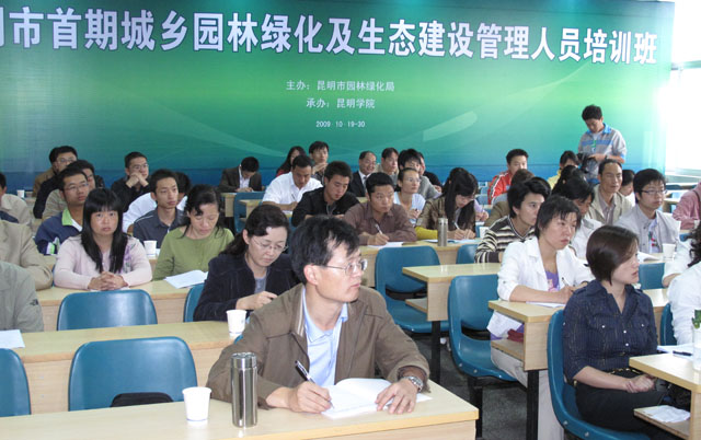 根据昆明市委、市政府提出“建设生态昆明绿色家园”的要求及昆明市“2009年城乡园林绿化及生态建设工作现场会”精神,经市政府批准,由best365足球官网与昆明市园林绿化局联合举办的“昆明市城乡园林绿化及生态建设管理人员培训班”开班仪式,于10月19日在我院昆师路校区举行。我院党委书记梁晓谷,昆明市政府副秘书长周峰越,市园林绿化局局长张家仁、副局长汪天祥等领导出席开班仪式。开班仪式由我院刘海发副院长主持。 参加本次开班仪式的学员有来自五华、盘龙、官渡、西山四个区和经济技术开发区、高新开发区、旅游度假区60余人从事林绿化管理一线工作人员。该培训将分期分批对全市范围内从事园林绿化建设和管理部门的企、事业从业人员进行短期与长期相结合的基础业务培训。 培训旨在努力提升我市城乡园林绿化管理人员的业务素质和管理水平,适应我市“建设生态昆明、绿色家园”的目标要求,把昆明建设成为“森林式、园林化、环保型、可持续发展的高原湖滨生态城市”。这既是市政府贯彻落实科学发展观的具体要求,也是我院发挥教学科研优势,积极为昆明谋求经济社会跨越大发展做贡献的现实需要。 梁书记出席开班仪式并作讲话。梁书记从贯彻昆明市2009年城乡园林绿化及生态建设工作现场会的精神、昆明市城乡园林绿化的基本情况和举办本次培训班的背景等方面,阐述了举办城乡园林绿化及生态建设管理人员培训的重要意义和作用。同时,梁书记向学员们提出了三点希望:一是希望认真对待培训工作,带着问题、善于思考,安心、认真听好每一堂课;二是希望严格学习纪律,做到学习有考核、管理有制度;三是希望用学到的理论指导实际工作,在岗位实践中不断向市园林绿化局和我院职教中心反馈宝贵建议,提出希望教师教些什么?怎么教的要求。 周副秘书长受陈勇副市长的委托代表市政府向首期城乡园林绿化及生态建设管理人员培训开班表示祝贺。他强调:今年昆明市城乡园林绿化及生态建设的主要任务是突出总量扩张和质量提升“两个重点”。他希望各位学员珍惜学习机会,培训结束后回到工作岗位上,一定要按市委、市政府的要求,按照昆明市城乡园林绿化的总体规划和工作部署,精心组织,真抓实干,充分发挥园林绿化管理人员的骨干作用为全市经济社会又好又快发展作出新的更大的贡献! 开班仪式上,张局长从我市园林绿化发展状况和个人体会等方面谈了加强城乡园林绿化及生态建设管理人员培训的必要性。他透露,今后昆明市的每一名园林绿化管理人员都必须经过培训考核,持证上岗。 开班仪式结束后,与会领导和全体受训学员合影留念。