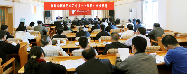 党的十七届四中全会结束后,中共云南省委、昆明市委迅速召开干部会传达会议精神。我院党政主要领导参加了省市传达中央精神会议后,于9月24日召集党委会,专题研究部署全院传达学习、贯彻落实十七届四中全会精神相关工作。