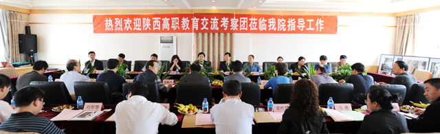 10月14日下午,西北大学等陕西省11所高等院校组成的高职教育交流考察团一行19人到我院考察交流。罗明东副院长主持召开座谈会,刘海发副院长出席并讲话,院长办公室、教务处、科研处、资产管理与设备处、经济系、自动控制与机械工程系、计算机与网络技术系、城乡建设与工程管理系、旅游系和职业技术教育中心负责人参加座谈交流。
