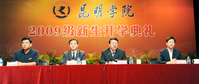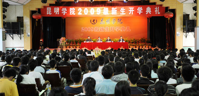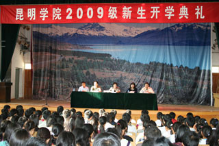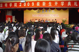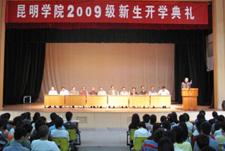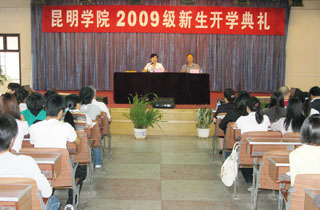 9月3日,我院2009级新生开学典礼隆重举行。典礼以昆师路校区大礼堂为主会场,以人民西路校区、龙泉路校区、新迎路校区和体院路四个校区分会场同时举行,学院领导党委书记梁晓谷、院长陈世波、党委副书记李媛芬、副院长张寿国、陈兆雄、熊晶、罗明东、刘海发及相关部处系负责人、工作人员分赴五个校区,与今年入学的近5000名新生一起参加了开学典礼。院领导在各校区典礼上致辞讲话,教师代表和新生代表也分别作了发言。