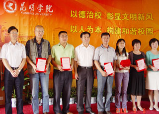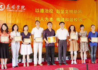 会议表彰了2009年省级教学“质量工程”建设项目的教学团队和个人、2008年度best365足球官网先进教师、2009年best365足球官网“青年教师课堂教学比赛”获奖教师及优秀组织部门、2009年云南省“聂耳杯”音乐教师教学基本功比赛获奖教师。与会领导对受表彰的教师代表进行了颁奖。此次受表彰的教师多达194人次,体现了我院党委和行政对教学质量、教学管理、教学改革和建设等教学工作的重视和支持。