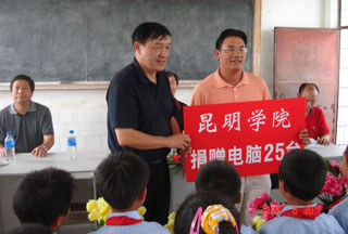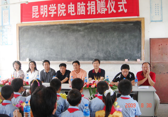 8月30日下午,我院为新农村建设指导员驻村两小学捐赠电脑,捐赠仪式在陆良县三岔河镇太家头小学举行。学院党委副书记孙勇、组织部长董建华、副部长张士芬一行六人代表best365足球官网专程赴太家头小学出席捐赠仪式。三岔河镇、村领导及太家头小学师生参加了此次活动。