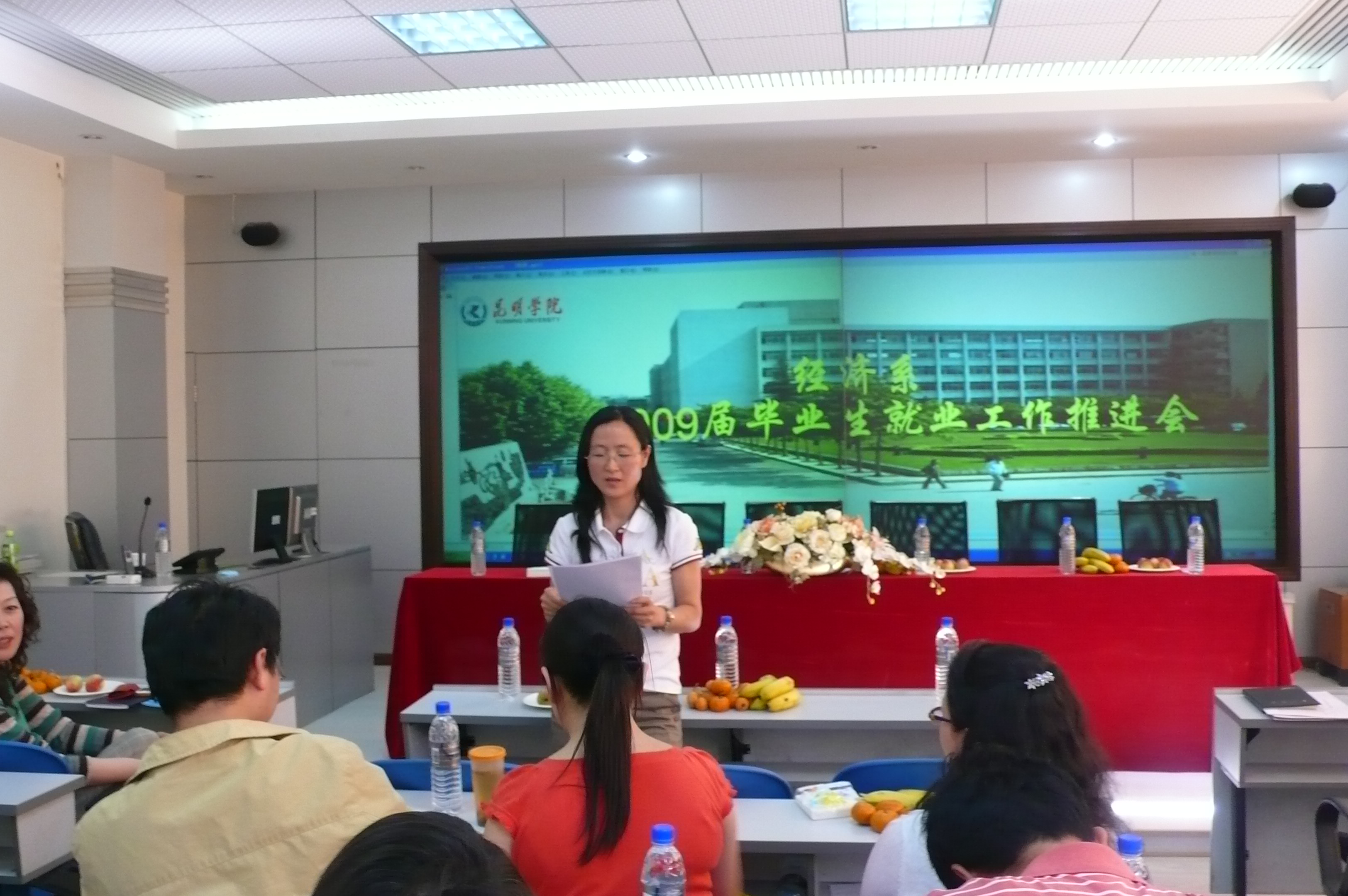 5月7日下午,经济系在房地产实验室召开了“2009届毕业生就业工作推进会”,学院招就处负责人何云仙老师、经济系系主任博斌老师、系党总支书记李跃波老师、系副主任沈艳萍老师、系党总支副书记雷新华老师、以及各教研室主任、全体辅导员和09届毕业班班主任出席了会议。会议由雷新华老师主持。