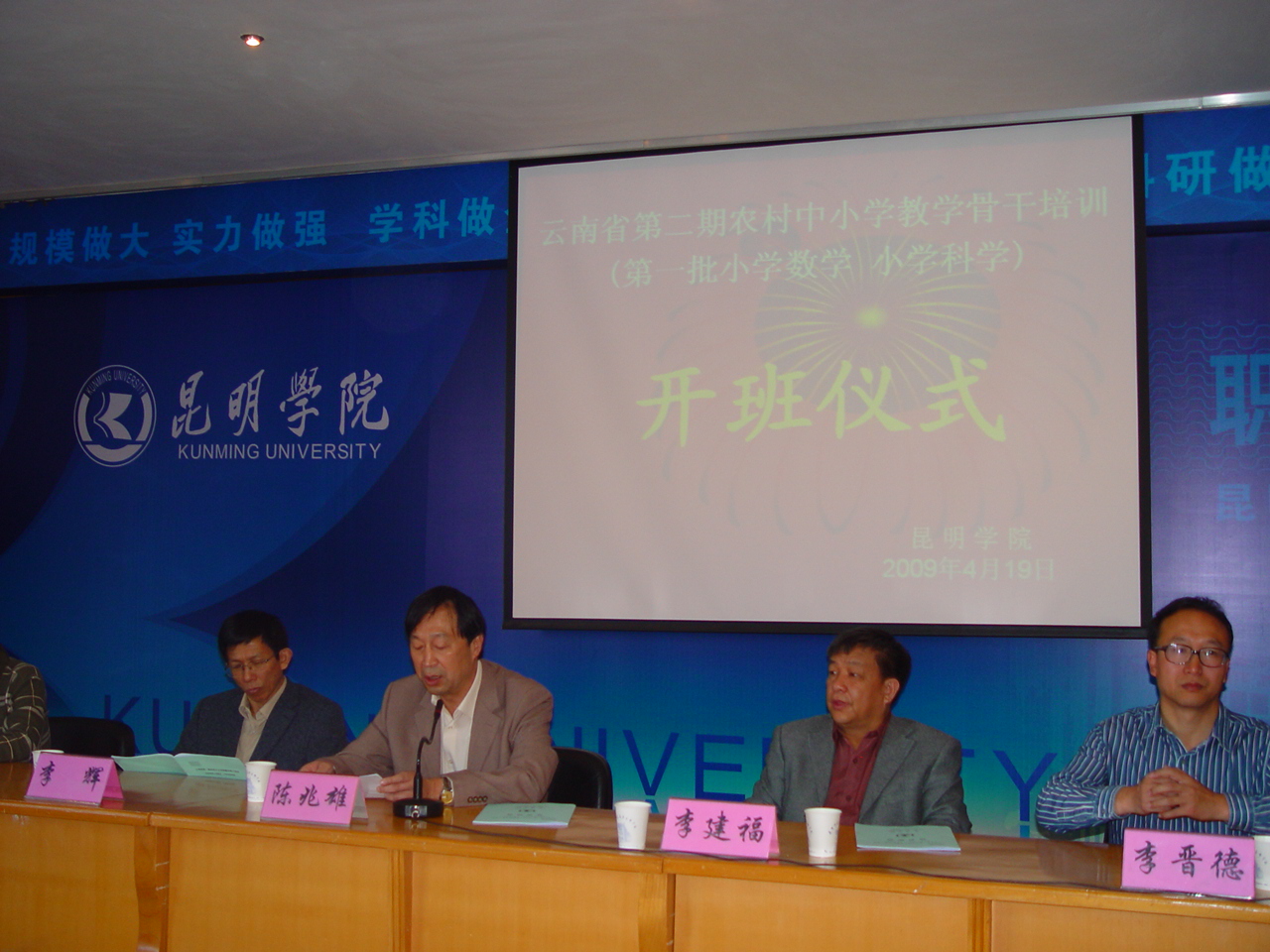 我院副院长陈兆雄、云南省教育厅师范处副处长李建福、云南省中小学教师继续教育中心主任李辉、我院职业技术教育中心、昆明市中小学教师继续教育中心主任熊绍宏、初等教育系主任李晋德等领导出席开班仪式并作了讲话。