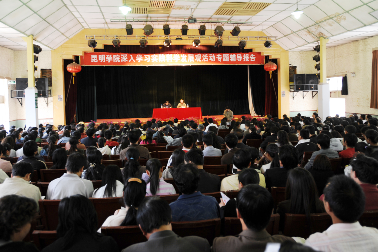 3月27日下午,我院深入学习实践科学发展观活动专题辅导报告会在昆师路校区大礼堂隆重举行。此次报告会是学院在召开了深入学习实践科学发展观活动动员大会后面向全院师生的首次专题辅导报告会。